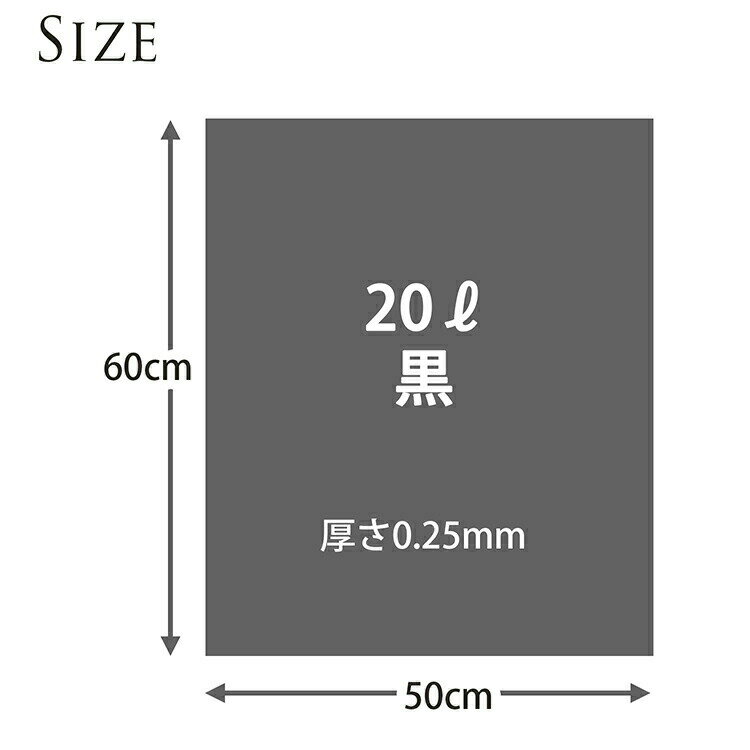 黒20Lタイプ、厚さ0.025mmで丈夫なポリ袋です。
