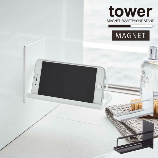キーワード マグネット スマホ スタンド 浴室 冷蔵庫 磁石 iPad PC スマートフォン 置き 台 シンプル おしゃれ ホワイト ブラック スチール 4972 4973 YAMAZAKI 山崎実業 202004-04